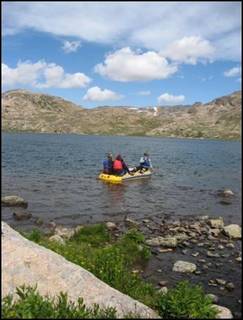 Figure 1. Day 1: Heading out to profile Rainbow Lake (elevation» 8,000ft ), a glacially fed lake in the Beartooth Mountains